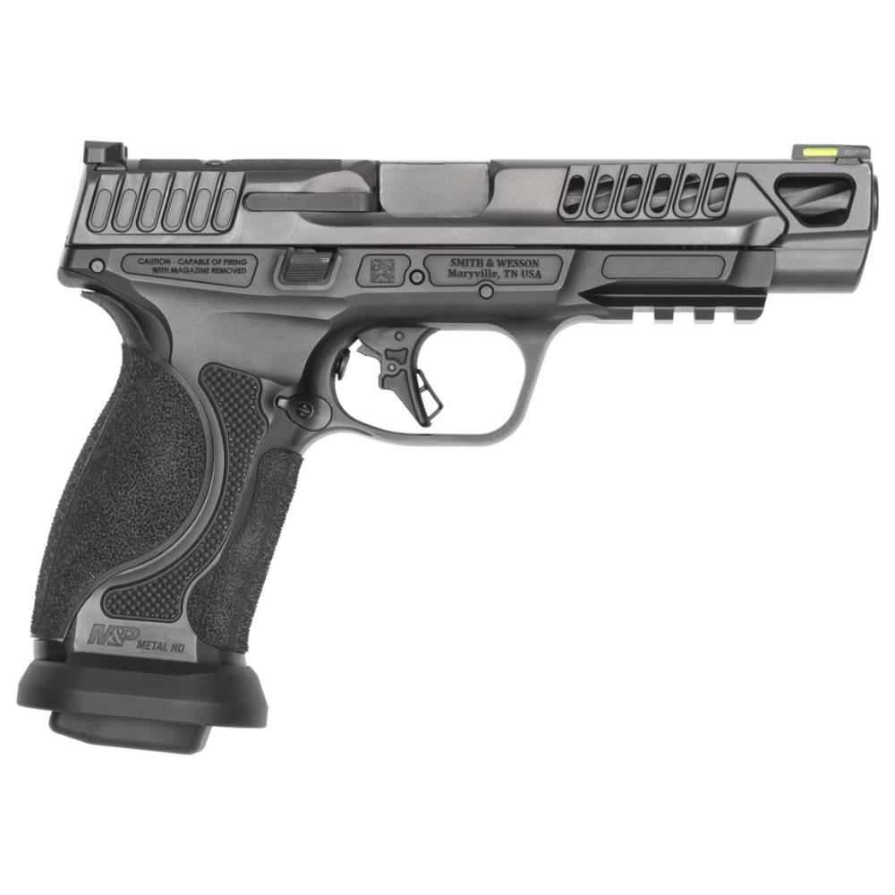The Performance Center M&P 9 M2.0 Competitor HD is a metal-framed, competition-ready 9mm built for speed and precision out of the box. Its 5-inch fluted barrel, lightening-cut slide, and enhanced flat-faced trigger deliver fast cycling and a crisp reset. Ships with four 17-round magazines, a flared magwell, and an optics-ready slide.
